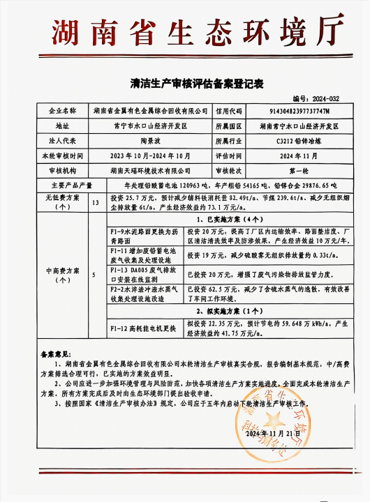 2022年,湖南金翼為響應(yīng)國家發(fā)展綠色經(jīng)濟(jì)理念的號召和大力發(fā)展再生資源產(chǎn)業(yè)、鼓勵資源綜合利用行業(yè)發(fā)展的指導(dǎo)思想,計(jì)劃充分利用本地資源和產(chǎn)業(yè)基礎(chǔ)優(yōu)勢,擬在水口山經(jīng)濟(jì)開發(fā)區(qū)產(chǎn)業(yè)園進(jìn)行改擴(kuò)建升級,提升企業(yè)原有廢鉛酸蓄電池回收利用能力到30萬噸,進(jìn)一步推進(jìn)廢鉛酸蓄電池回收再利用行業(yè)的發(fā)展和環(huán)保事業(yè)的可持續(xù)發(fā)展,將該擴(kuò)建二期項(xiàng)目建設(shè)成行業(yè)一流的環(huán)保綠色低碳化的標(biāo)桿工廠。